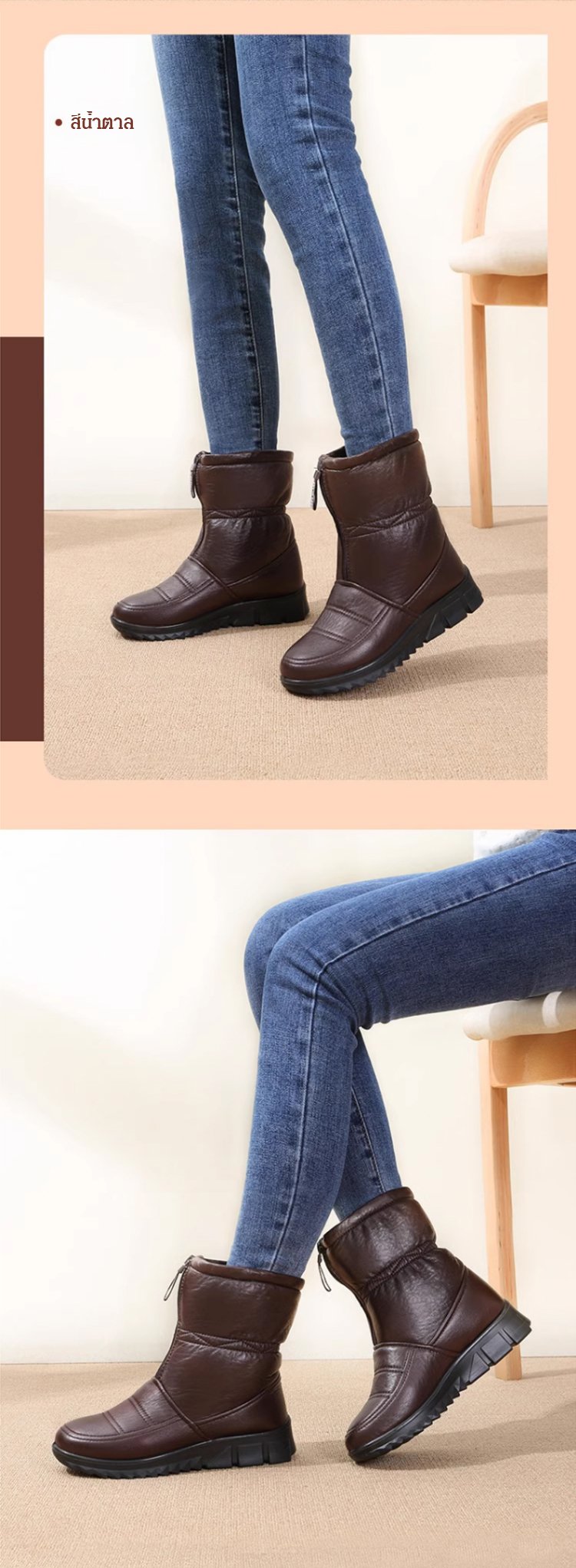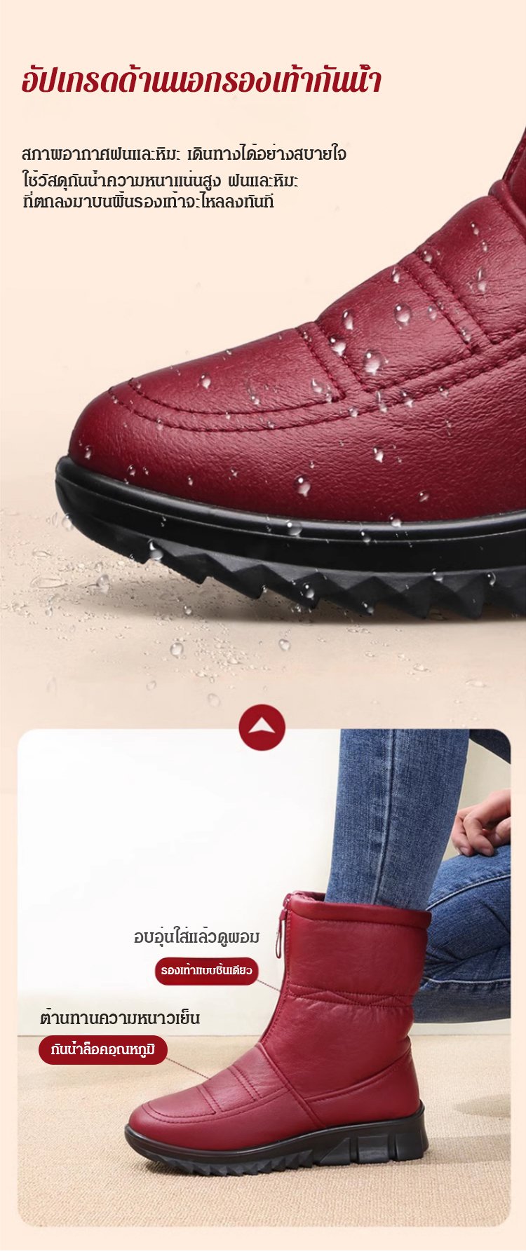 รองเท้าบูทลุยหิมะกันน้ำกันลื่นและรักษาความอบอุ่น