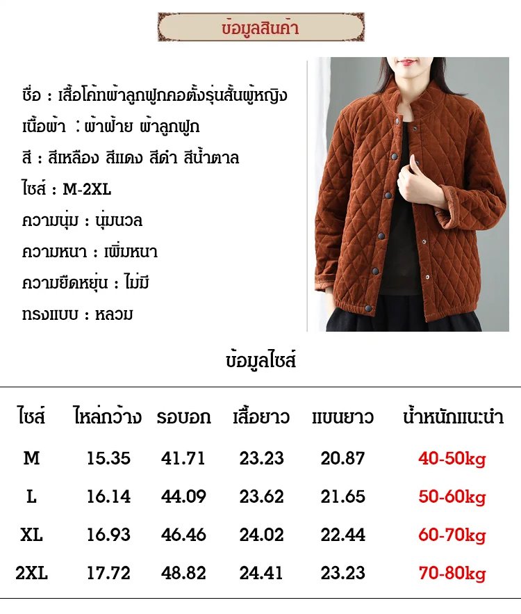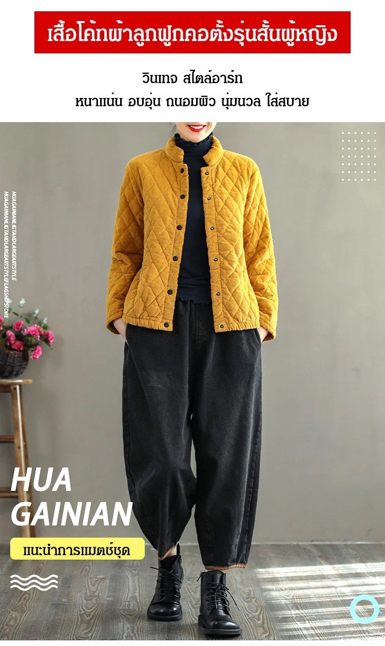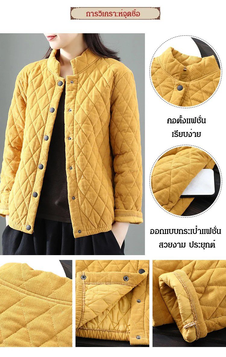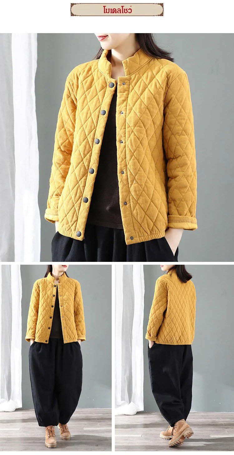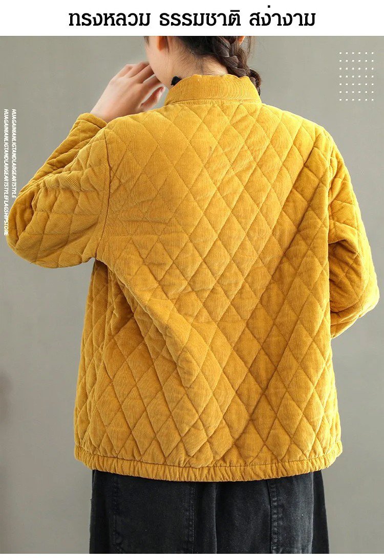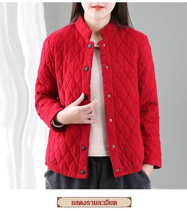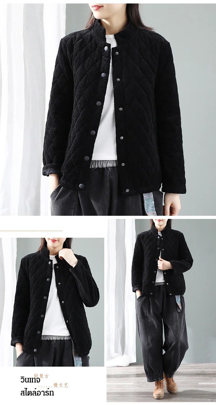เสื้อโค้ทผ้าลูกฟูกคอจีนรุ่นสั้นของผู้หญิง