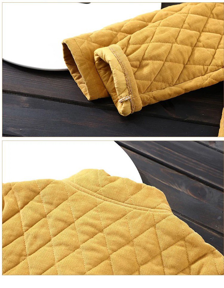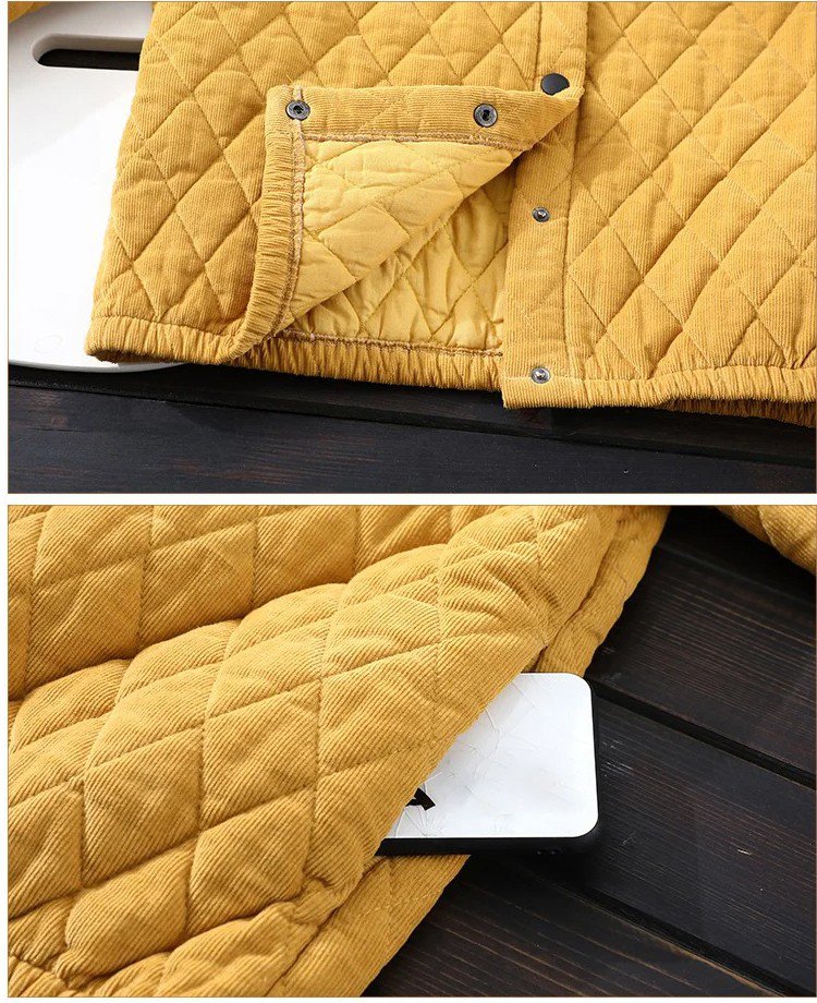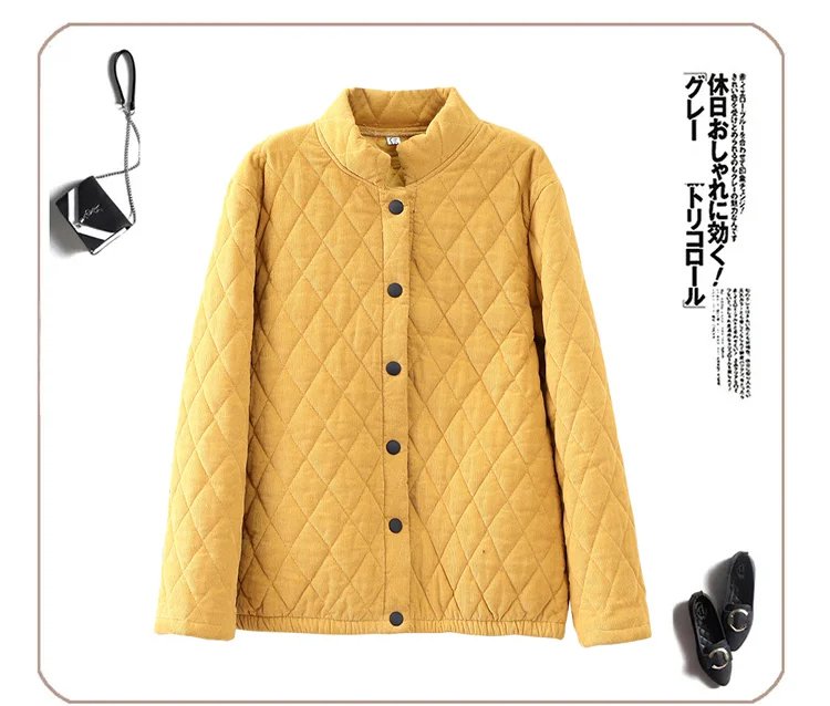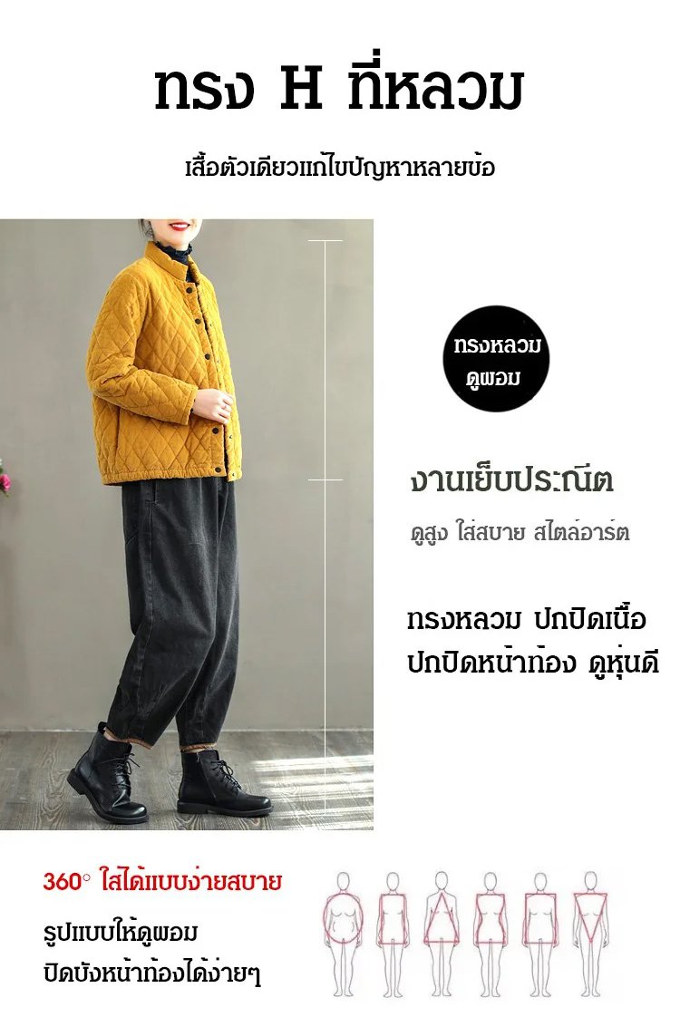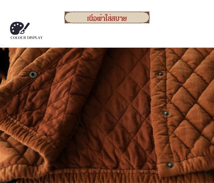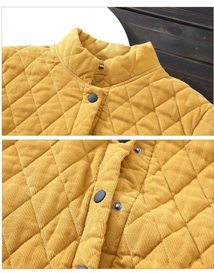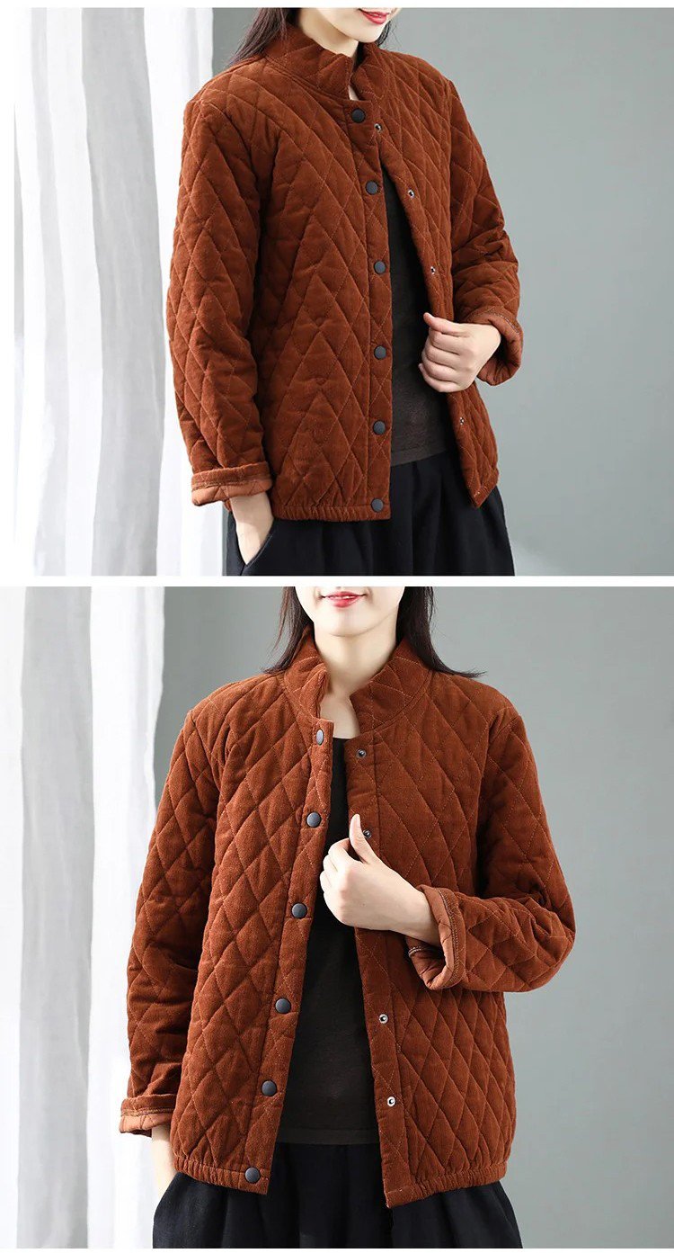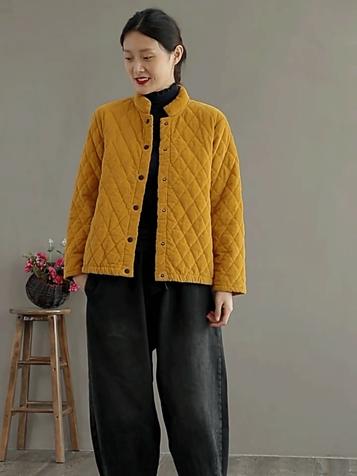เสื้อโค้ทผ้าลูกฟูกคอจีนรุ่นสั้นของผู้หญิง